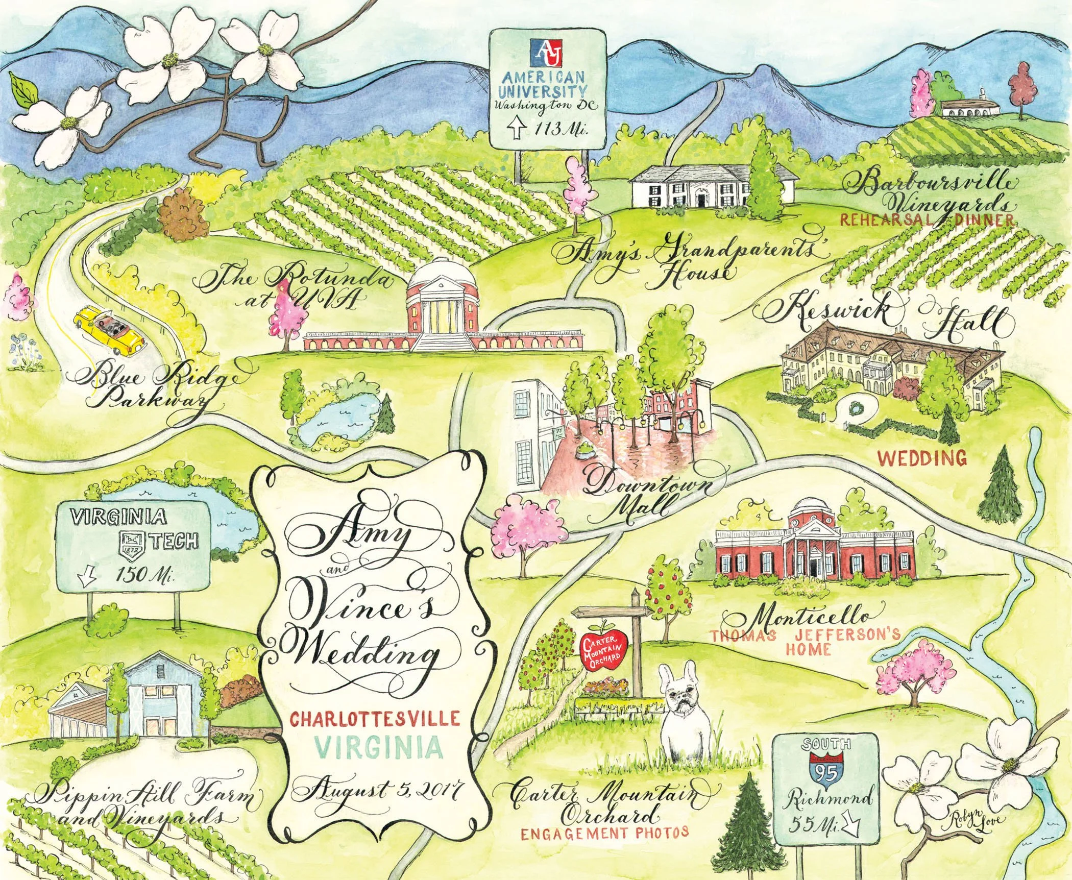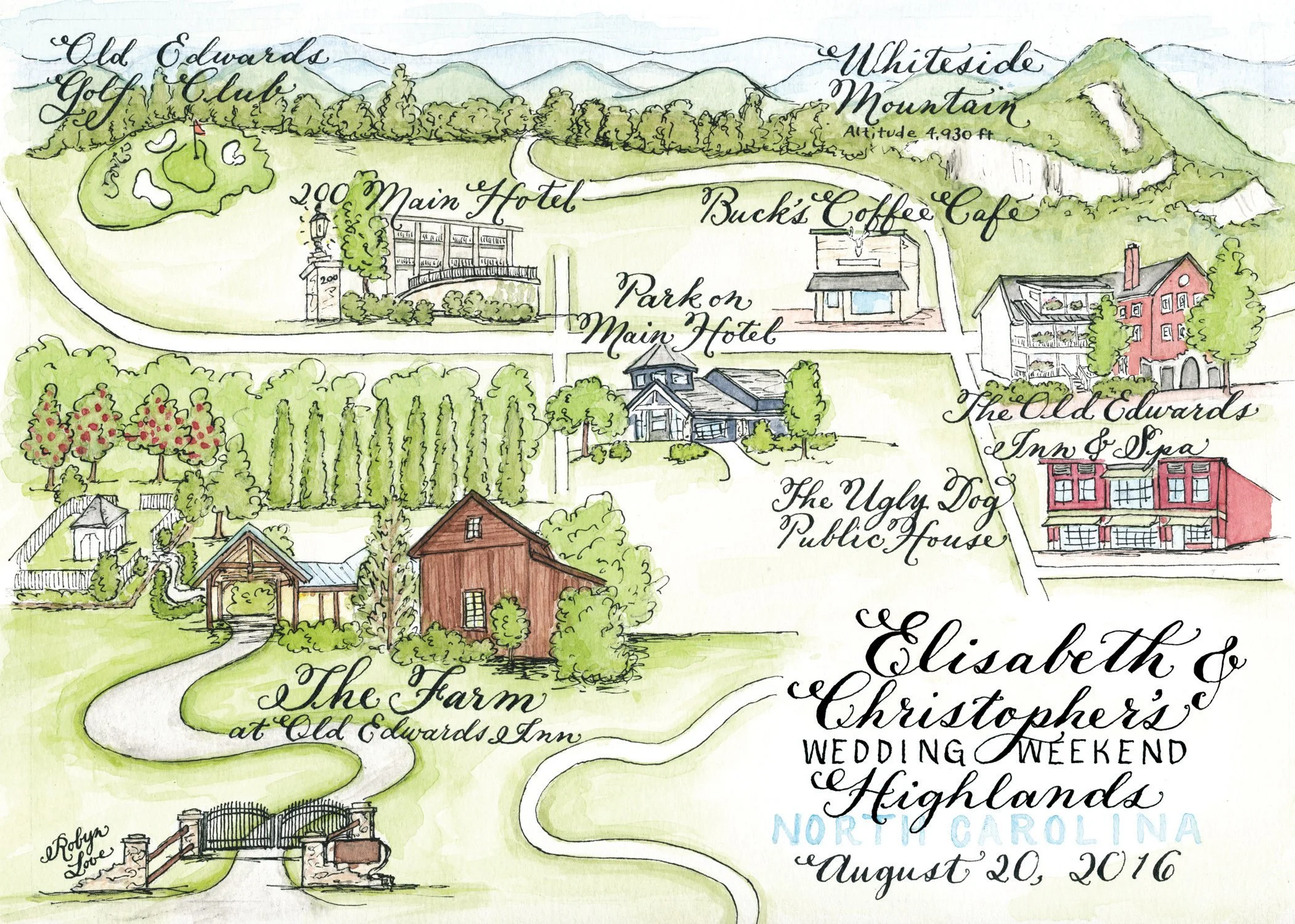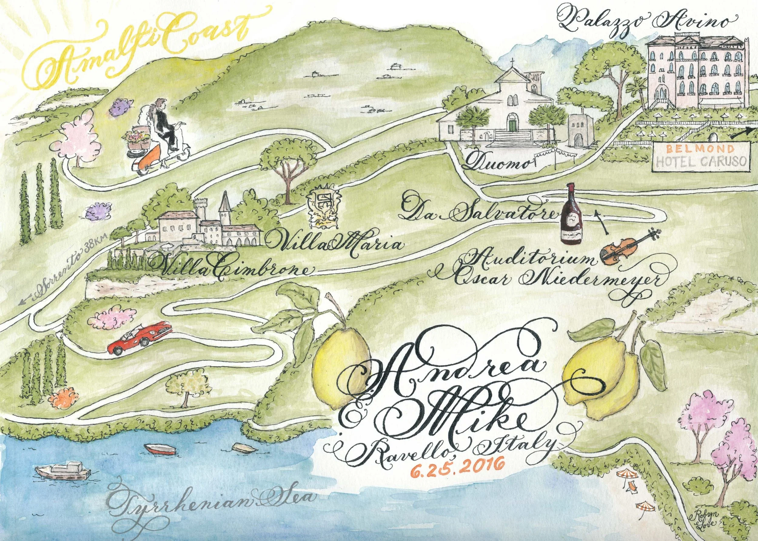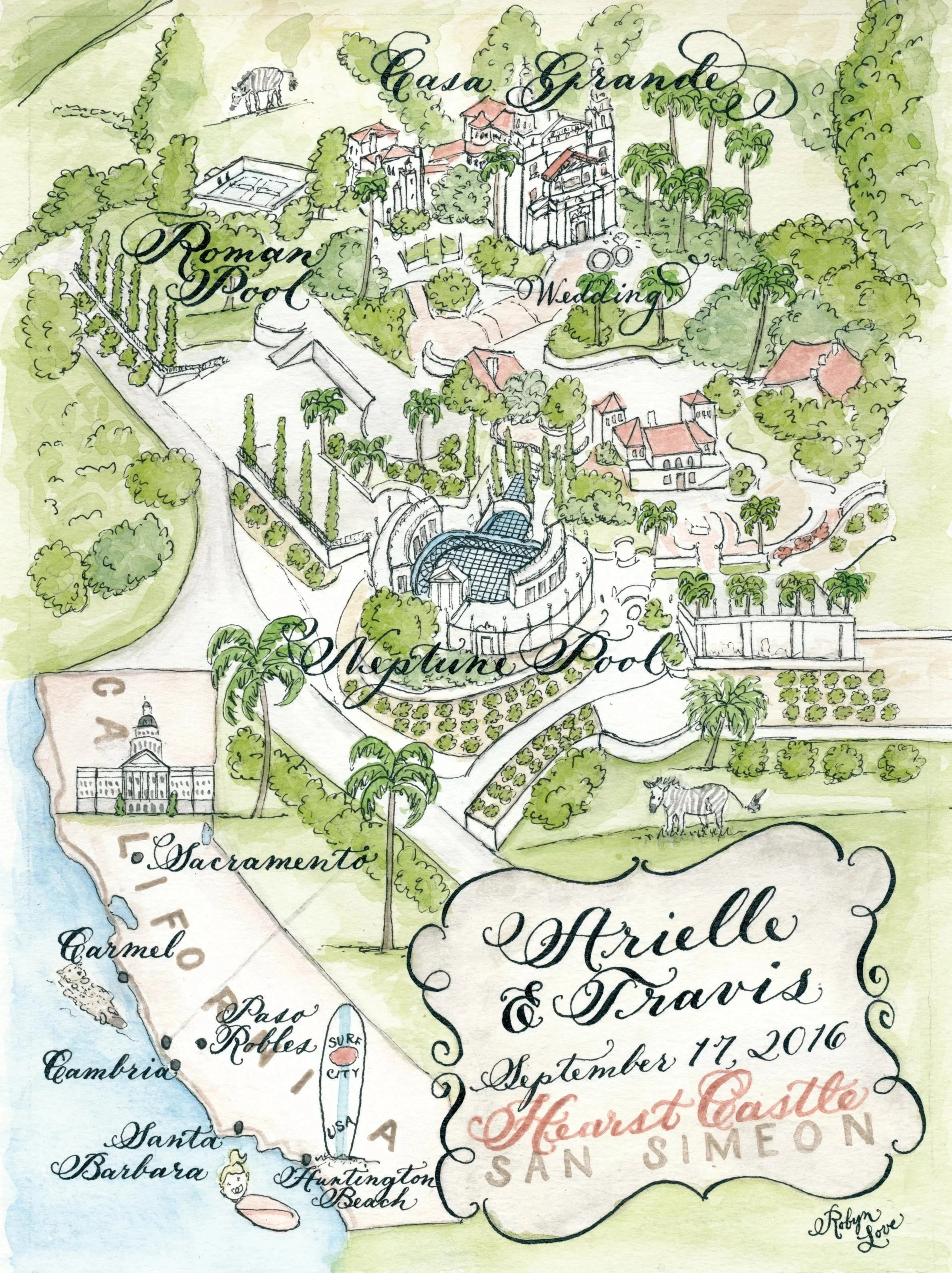 2. Please fill out the client questionnaire, located on the process page, containing an extensive list of simple questions about your event and stationery needs to help me serve you better and provide a more accurate estimate. It also requires photos of all locations and icons, plus directions on how to make a custom Google map. Please send it along in an email to hello@designsbyrobynlove.com . (You are responsible for sending me an updated questionnaire anytime you make changes. I am not responsible for changes sent in an email, as they are too hard to keep track of.) The map section is very complex. Please read it very carefully and answer it in as much detail as possible. The final product depends on your execution in expressing through words the style you want and also researching as many photos as you can of the location. If there is something on the questionnaire that you have no preference about, it is totally fine to leave that question blank.