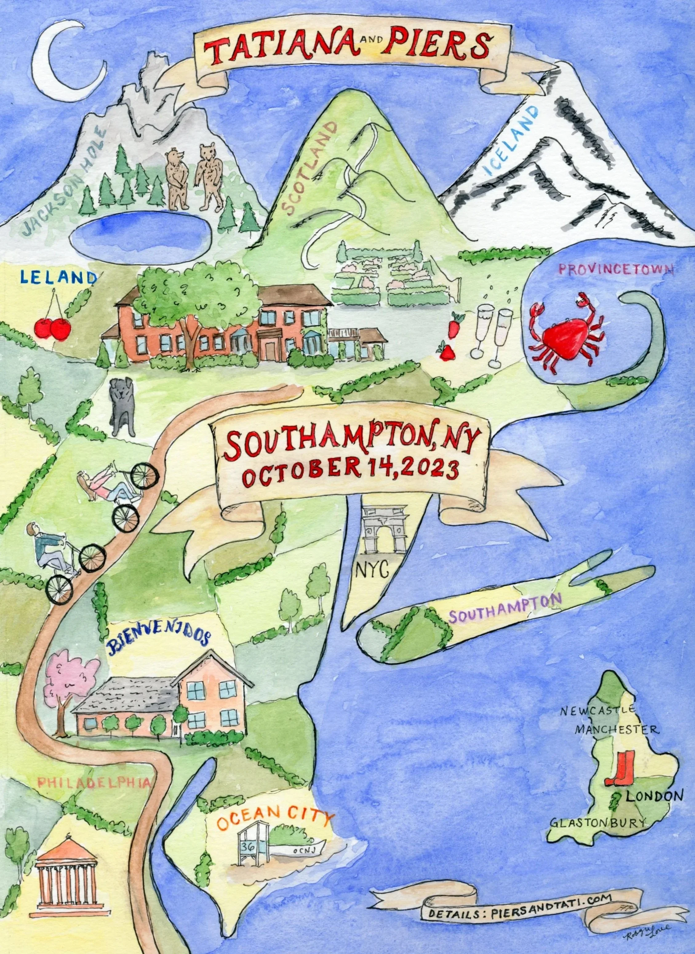 6. I will sketch, paint and then calligraphy your map in the 7-10 days of the design process, taking care that the paint dries fully between layers. Be sure to tell me in your questionnaire which of my font styles you want for the calligraphy lettering stage. They are viewed on the Fonts page. But I can always design a new font for you if you can’t find one you like.